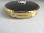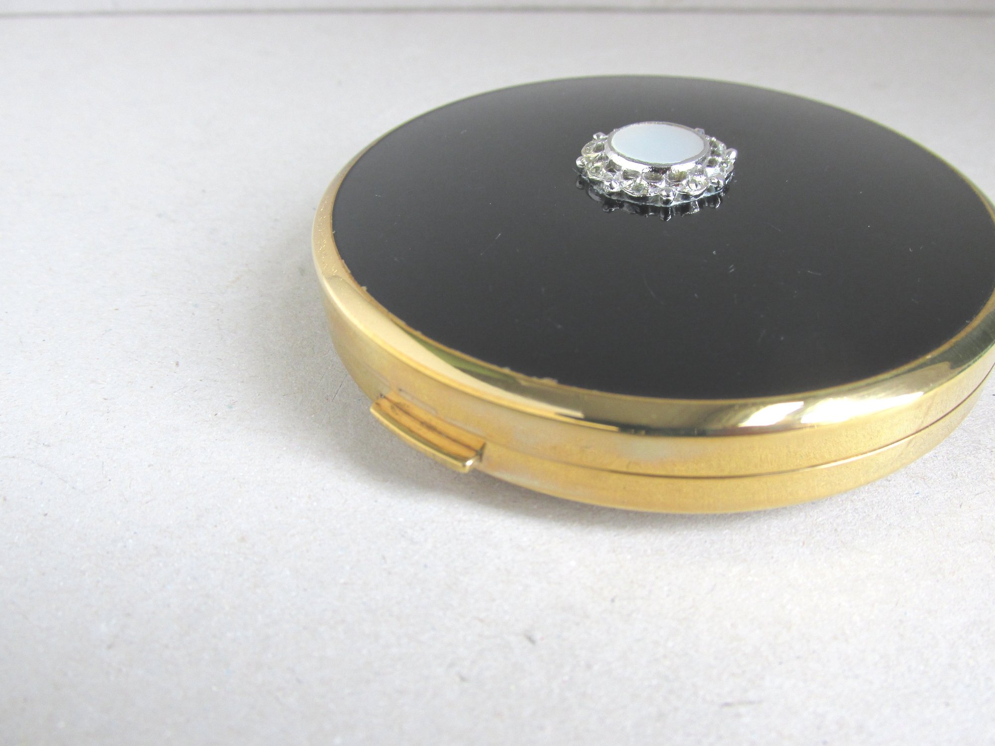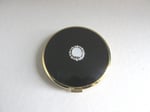 Vintage Melissa Powder Compact, Black Top with Iridescent Embellishment c. 1960s, with pouch